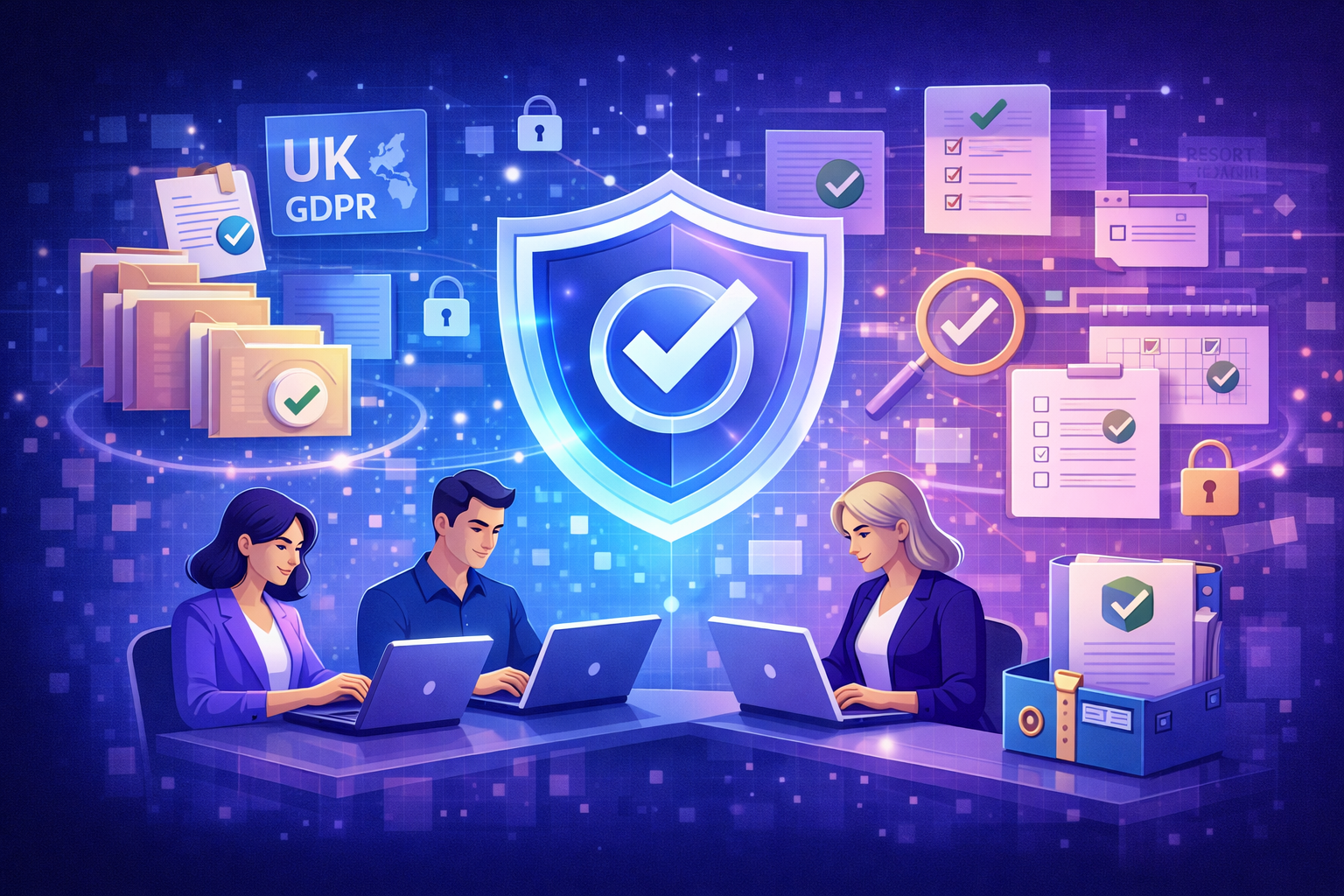Automatically aligns operations with UK GDPR and security standards, generating audit-ready evidence without manual work.