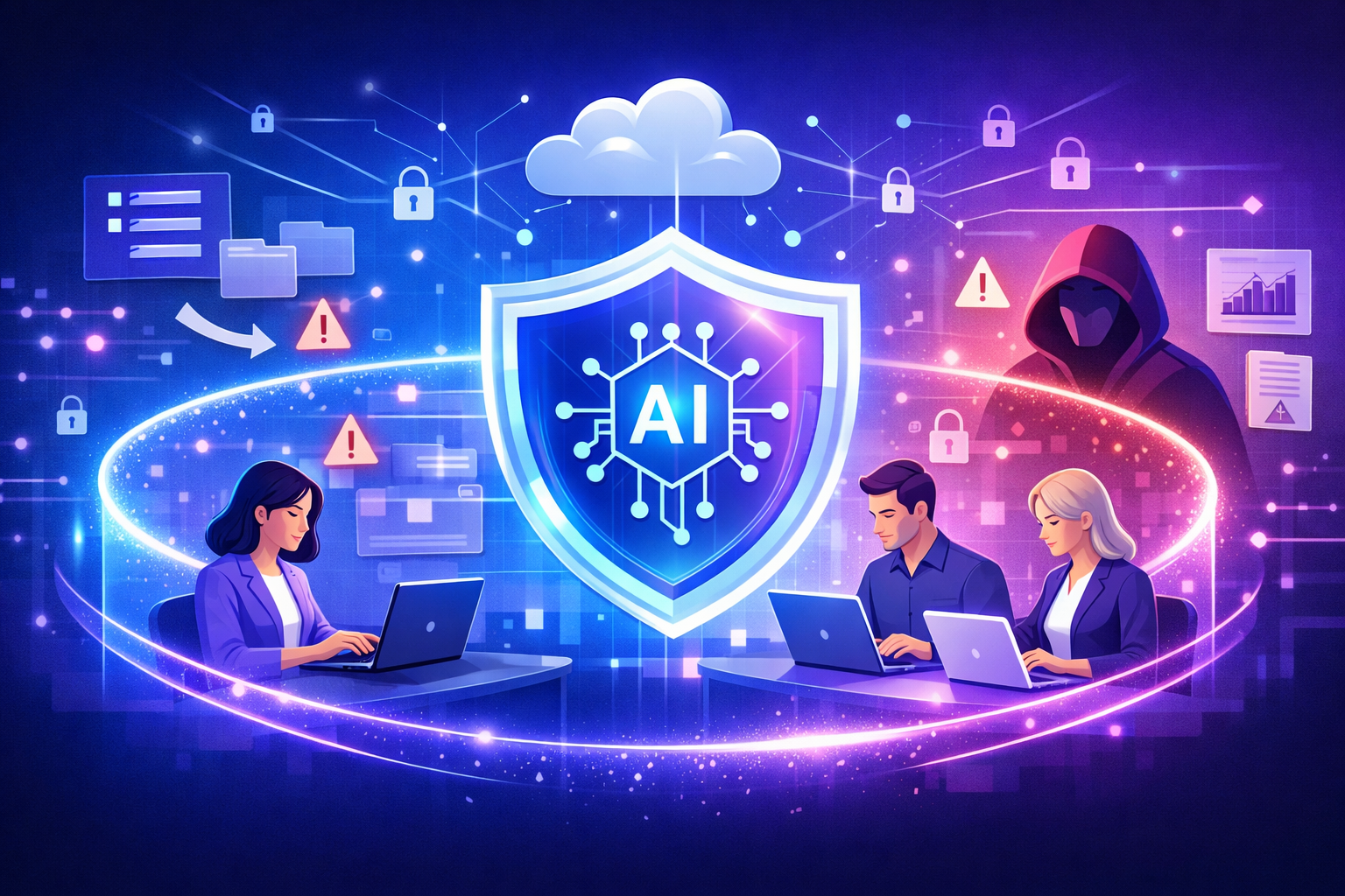 The platform continuously monitors workflow behaviour such as login patterns, file handling, and system activity. It identifies risky patterns and predicts potential issues before they become security incidents.
